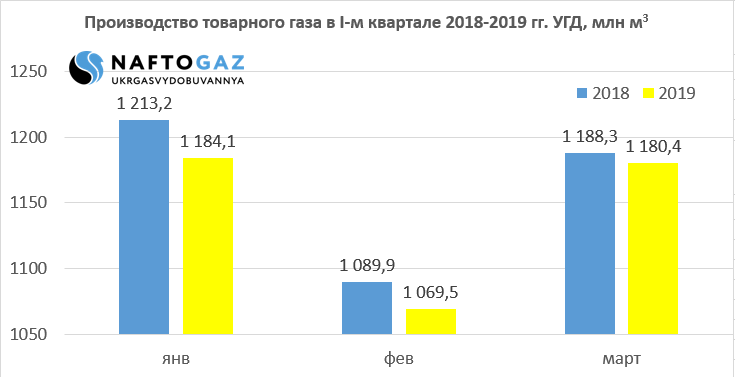 Если учесть потери газа, результаты первого квартала 2019 года выглядят иначе. Так производство товарного газа «Укргаздобычей» в январе-марте 2019 года снизилось на 57,4 млн м3 или на 2% в сравнении с аналогичным периодом 2018 года.