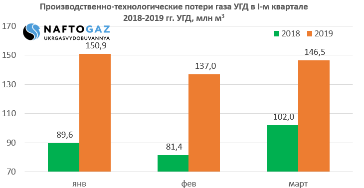 По итогам производственной деятельности в январе-марте 2019 года, АТ «Укргаздобыча» нарастила потери природного газа (производственно-технологические затраты или потери) до 434,4 млн м3 или на 59,12%, в сравнении с показателями за аналогичный период 2018 г.