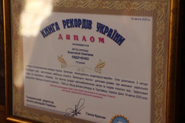 Рекорд Анастасии Евдоченко зафиксировали в категории “Благотворительность, кондитерские изделия” – это наибольшее количество куличей, выпеченное детскими руками.