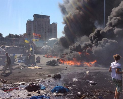 Майдан начали расчищать от баррикад: протестующие жгут шины и бросают камни