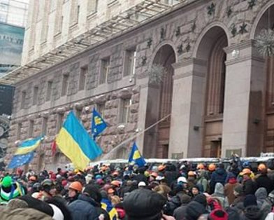 Митингующие прорвали оцепление ВВ и пытаются разблокировать Грушевского
