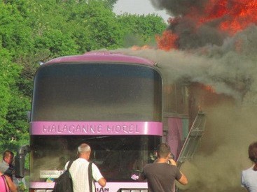 Под Харьковом дотла сгорел автобус, в котором ехали 60 человек