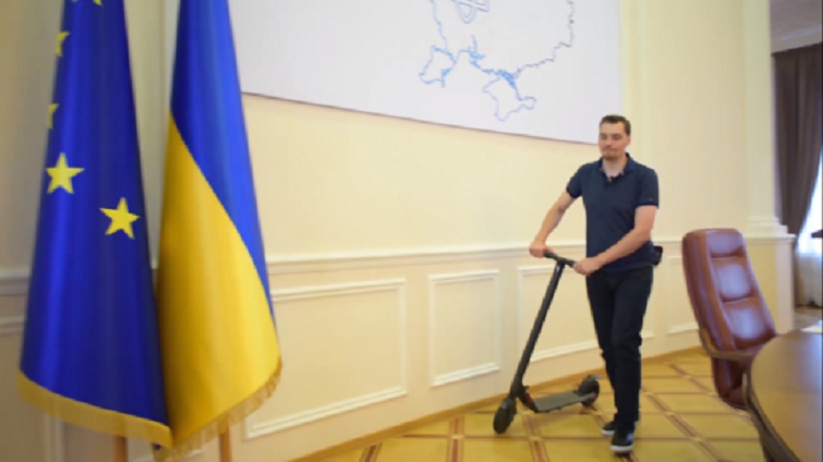 Прем’єр Гончарук проїхався будівлею Кабміну на самокаті та записав звернення до Дня знань