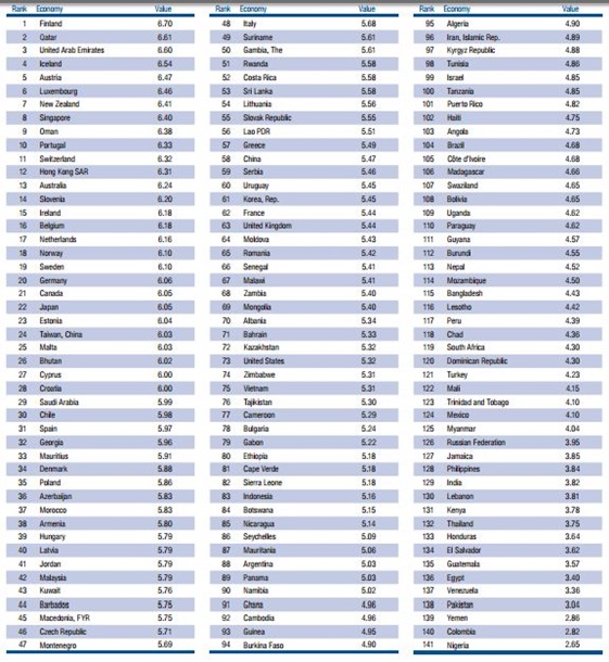 Украина не вошла в рейтинг из-за недостаточного количества данных, отмечается в документе. Всего рейтинг состоит из 141 государства.
