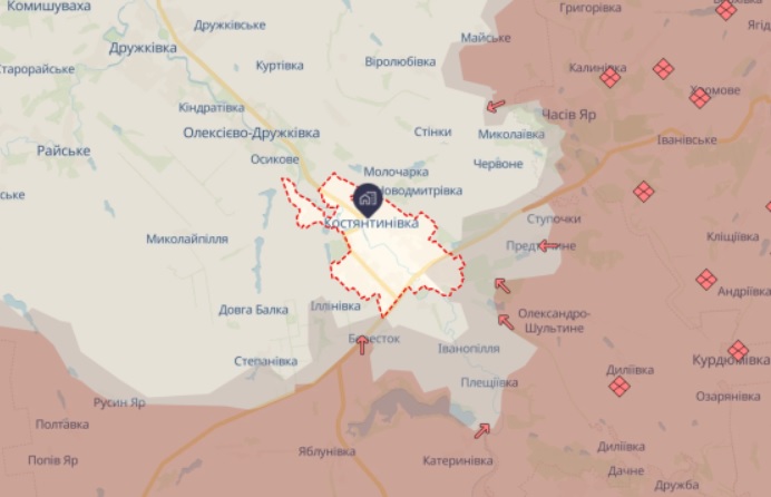 Костянтинівка залишається одним із ключових логістичних вузлів на Донеччині, контроль над яким відкриває шлях до подальшого просування вглиб області. Ситуація на цьому напрямку характеризується стабільно високою інтенсивністю артилерійських обстрілів та регулярними спробами ворога прорвати передній край оборони українських захисників.