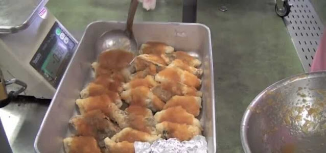 После того, как работники справились с картофелем, они приступают к приготовлению рыбы в грушевом соусе. Фрукты школьники тоже выращивали своими усилиями. Еще в этот раз на обед у них суп, пюре, молоко и хлеб.