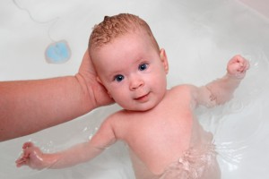В маленькой ванночке малышу тесно, особенно к трем месяцам. Поэтому рекомендуется купать малышей в большой ванне, где они смогут вдоволь набарахтаться. Однако перед этим необходимо тщательно вычистить ее содой, без применения других чистящих средств.