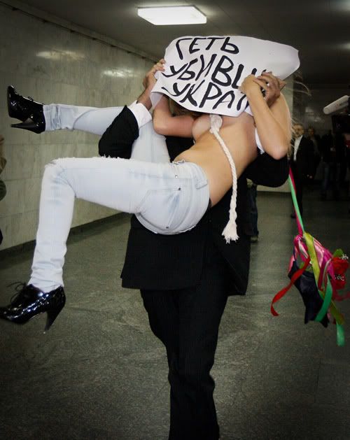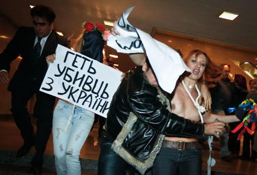 "На прошлой акции посол отказался выйти к нам из здания посольства, поэтому мы пришли к нему сами. Мы хотим подстегнуть все цивилизованные страны к бойкотированию варварских мусульманских традиций, недопустимых в современном обществе. Для начала мы требуем от украинского правительства прекратить дипломатические отношения с Исламской республикой Иран. На наш взгляд, единственное, что может заставить мусульман остановиться – это полная изоляция, игнорирование со стороны развитых прогрессивных стран. Также нам кажется издевательством тот факт, что Неделя культуры Ирана в Украине пришлась на следующую же неделю после скандала с Сакине Мохаммади-Аштиани, осужденной за измену умершему мужу, чью казнь отложили только под давлением мировой общественности. Эта отсрочка - первая победа над жесточайшим режимом, которую необходимо закрепить, а не пропустить мимо ушей", - сказала Анна Гуцол, лидер женского движения FEMEN.