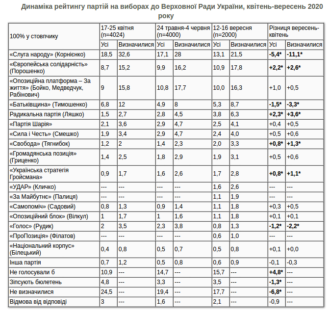 Какие партии прошли бы в Раду, если бы выборы проходили в сентябре