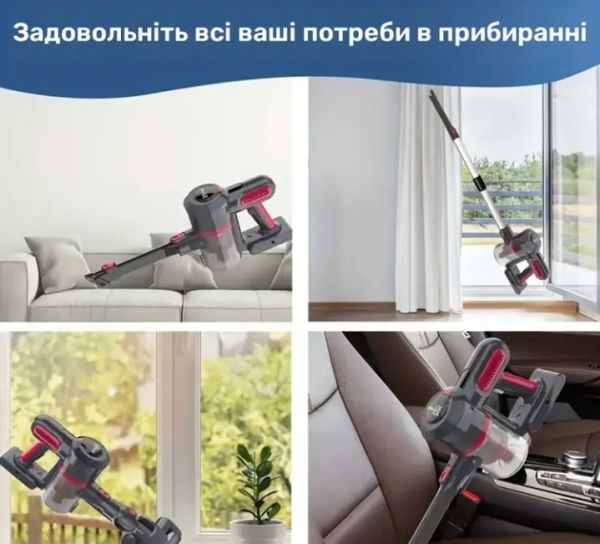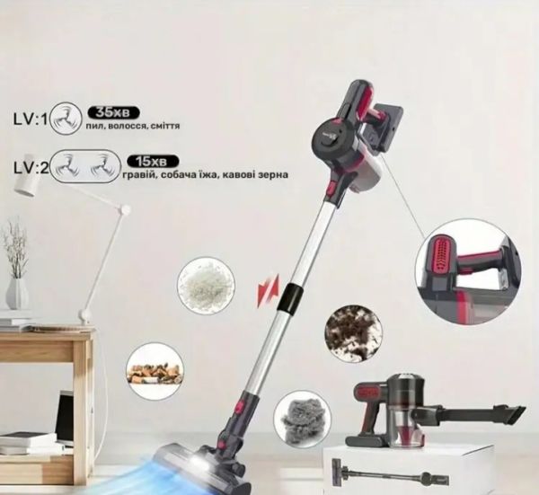 Цей бездротовий ручний пилосос підійде для ефективного прибирання. Він оснащений потужним двигуном, зручною ручкою та знімним контейнером для пилу. Цей компактний та легкий пилосос ідеально підходить для швидкого прибирання в будинку чи автомобілі.