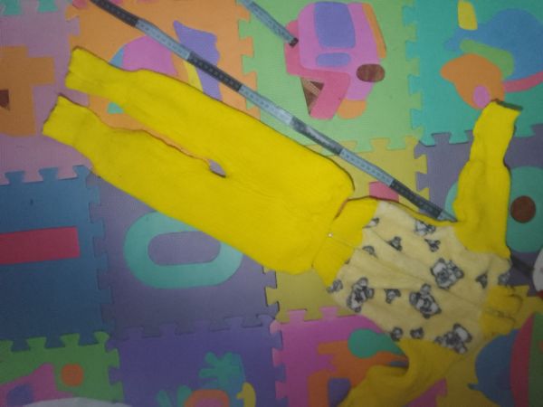 Продам красивый желтый костюм - на девочку 1-1,5 года = длина штанов 48 см., в шаге 28 см., длина кофты от плеча до резинки - 31 см, длина рукава от шва -25 см - 255 грн девочку