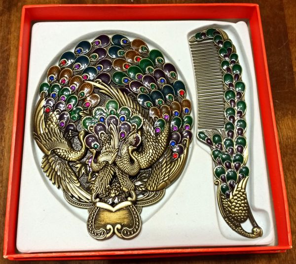 Продам женское карманное зеркало в виде павлина с зелёным гребнем.В отличном состоянии.Смотри фото.Ручная работа,привезено с Египта.