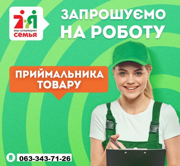 Супермаркет "Сім'я" по вул.Ювілейна 50а, запрошує до своєї команди ПРИЙМАЛЬНИКА ТОВАРУ.